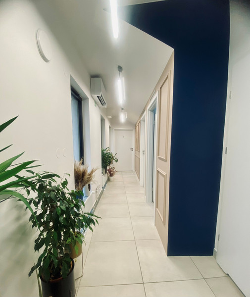 - do dyspozycji najemcy jest lokal składający się z 3 pomieszczeń (gabinetów - z dostępem do ciepłej wody w każdym), toalety, korytarza, pomieszczenia socjalnego i gospodarczego. Istnieje także możliwość aranżacji lokalu do dwóch pomieszczeń, toalety, korytarza i pomieszczenia gospodarczego. Oba rozwiązania zaprezentowane zostały na załączonych rzutach.