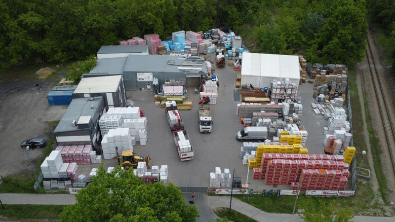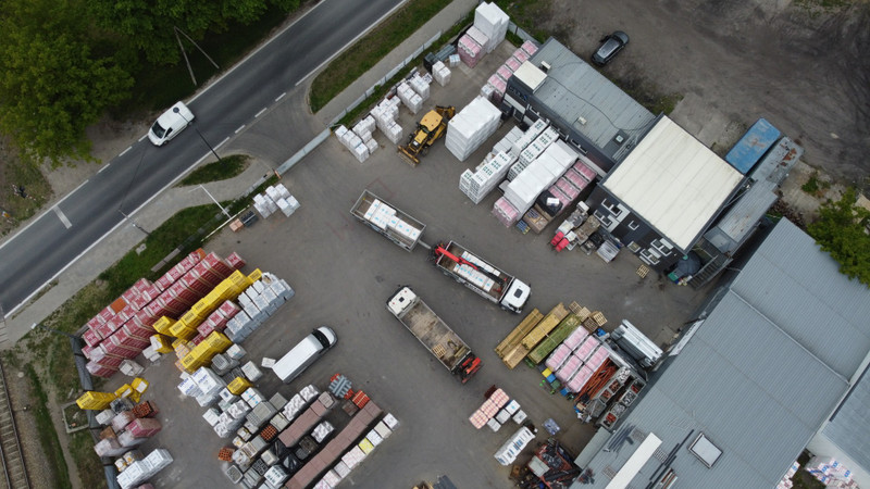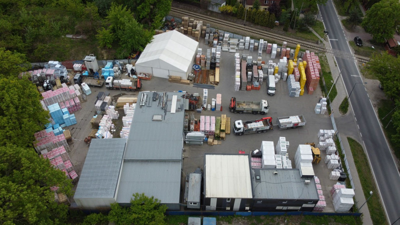 • Utwardzony plac z kostki – idealny pod składowanie materiałów i swobodne manewrowanie pojazdami