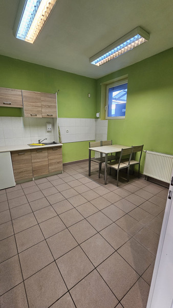 Uklad pomieszczeń: 2 pokoje pomieszczeń około 30m2 z oknami, jedno pomieszczenie około 40m2 bez okien, WC 12m2, kuchnia/pomieszczenie socjalne 12m2, korytarze około 15 m2.