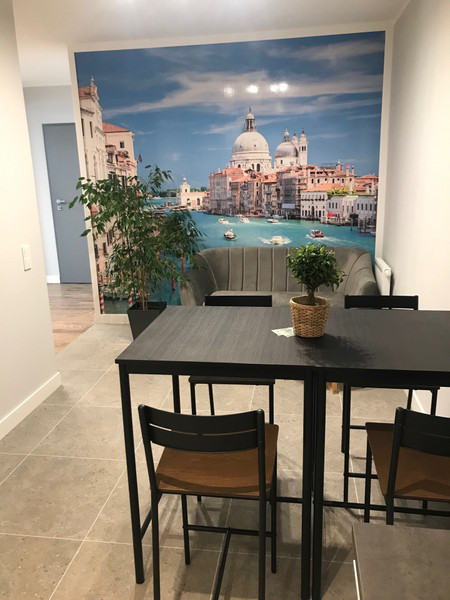 - kuchni , stół z krzesłami oraz kącik kawowy ( lodówka, zmywarka, płyta grzewcza, mikrofala)