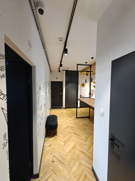 Do zagospodarowania 5 pomieszczeń plus w pełni wyposażona część socjalna (zmywarka, mikrofalówka, lodówka), WC + drugie dostępne w części wspólnej korytarza.