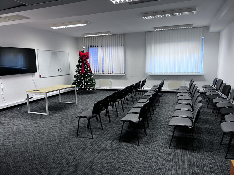 - udogodnienia (w cenie): energia elektryczna, klimatyzacja, ogrzewanie podłogowe, sala konferencyjna, pokój socjalny.