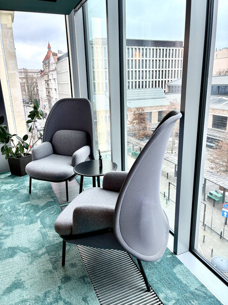 Biuro znajduje się w nowoczesnym, nagradzanym budynku o w pełni szklanej elewacji, oferującej panoramiczne widoki na trzy strony świata oraz doskonałe doświetlenie światłem dziennym. Stylowe, ponadczasowe wykończenie części wspólnych podkreśla butikowy charakter inwestycji.