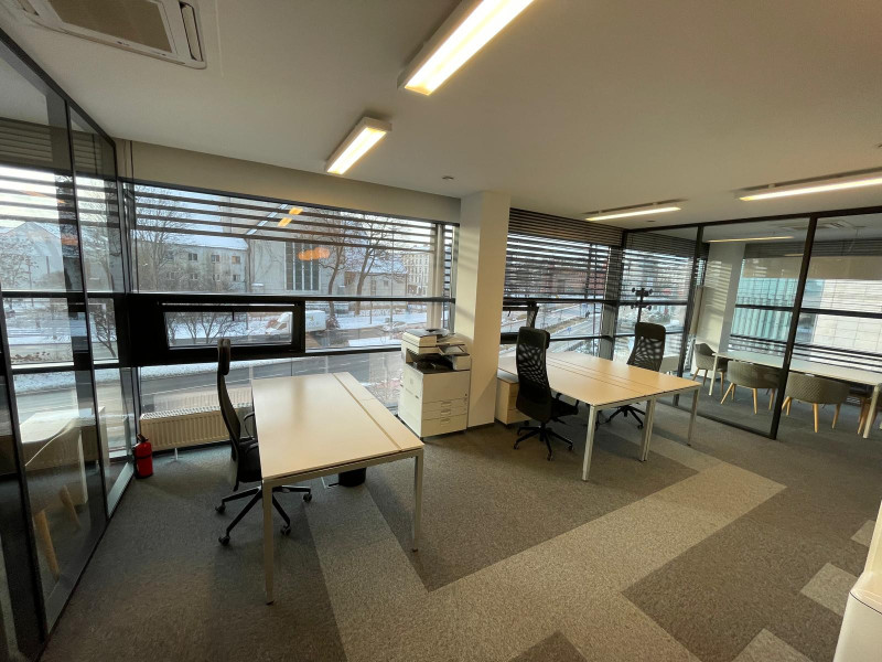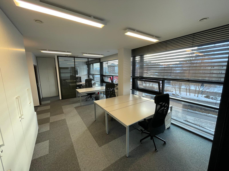 • Powierzchnia: ok. 64,3 m² (open space oraz 2 przeszklone pomieszczenia)