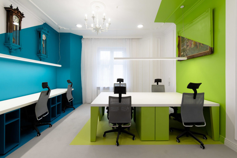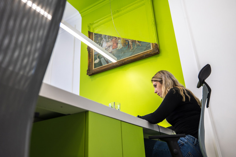• Strefa pracy: Robione na wymiar biurka i ergonomiczne krzesła (przestrzeń dla maksymalnie 29 osób).