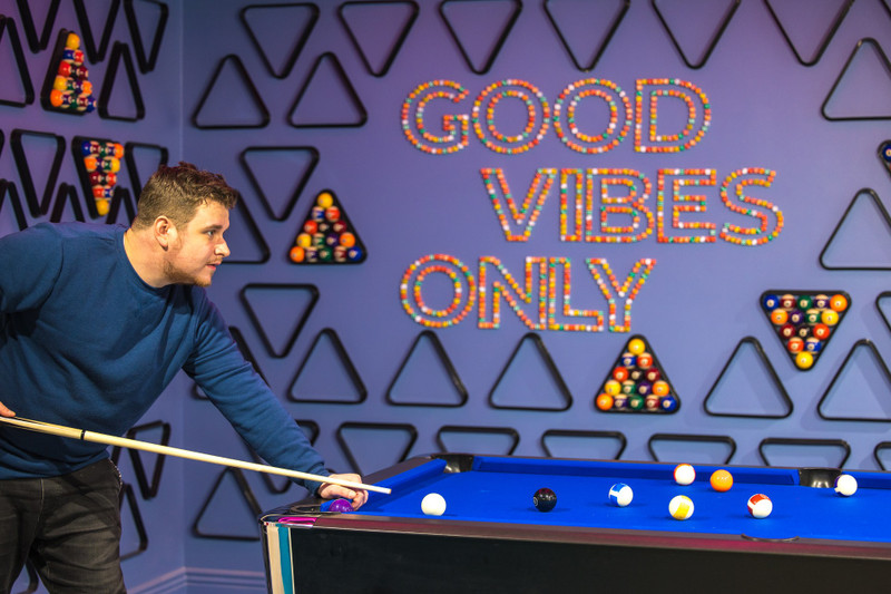 • Strefa chillout: Bilard, piłkarzyki, konsola, dart, szachy, duży TV oraz basen z piłkami.