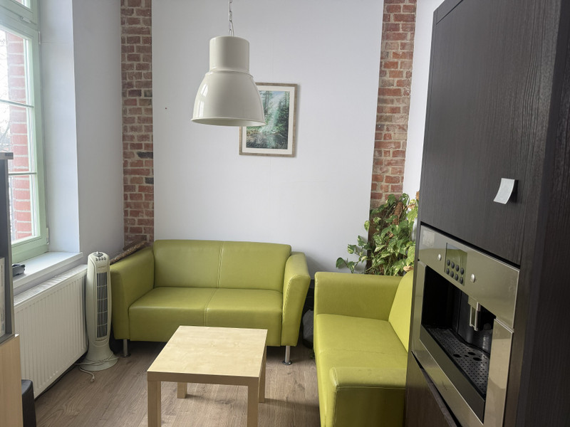 Układ pomieszczeń - wejście ustawny hall, przestrzeń do pracy na 3 osoby, może być też pomieszczeniem prowadzenia warsztatów - ok 30 metrów; meeting room wyposażony w dwie kanapy, ekspres do kawy 8 metrów. Toaleta.