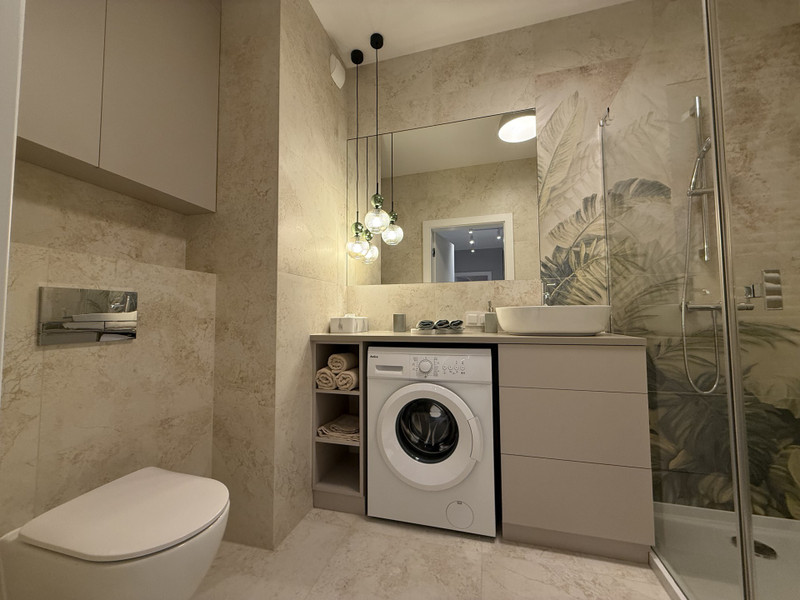 Ponadto do dyspozycji najemcy jest nowa łazienka (toaleta, pralka, prysznic), a także w pełni wyposażona kuchnia i garderoba w korytarzu. Istnieje możliwość parkowania samochodu na terenie osiedla. Dostępne są także bezpieczne miejsca dla rowerów zarówno przed budynkiem jak i w hali garażowej.