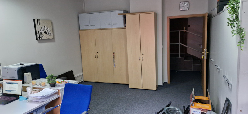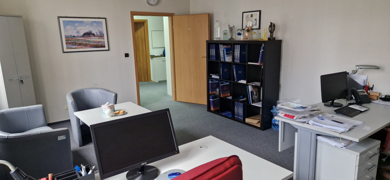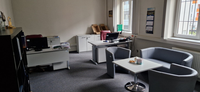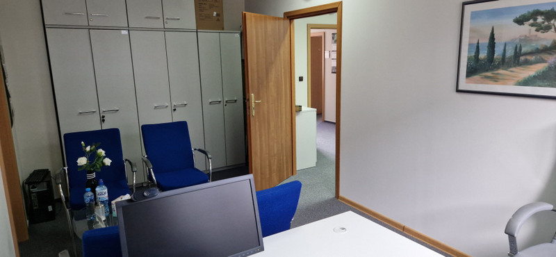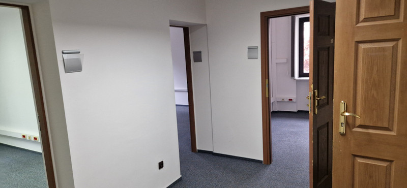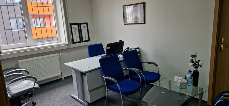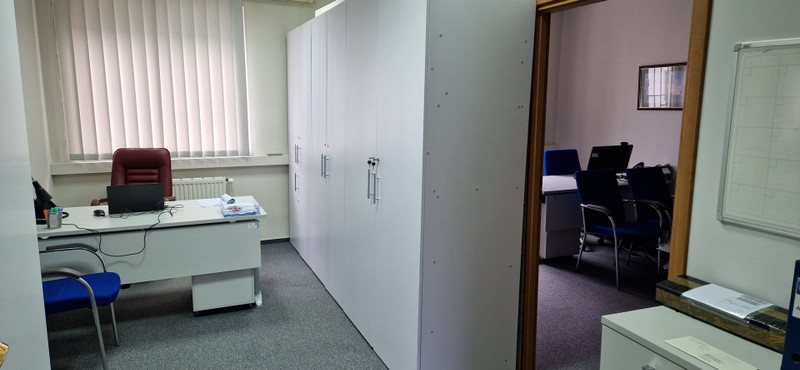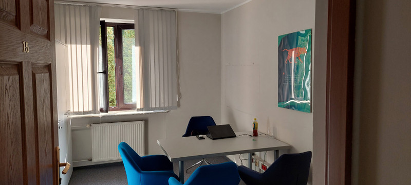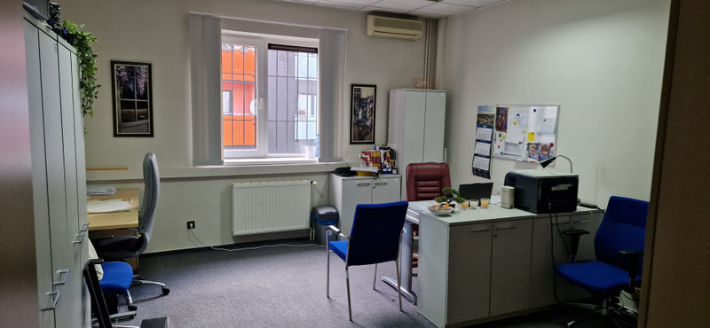 1) Lokal biurowy o powierzchni 140 m2 , składający się z 5 pokoi od 15m2 do 26m2, korytarza 23m2 i toalety 5m2. Pomieszczenia są gotowe do dowolnej aranżacji przez przyszłego najemcę, umeblowane (tak jak na zdjęciu) lub nieumeblowane.