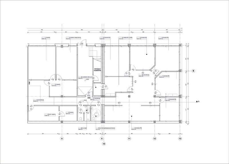 Wnętrze obejmuje 12 pomieszczeń, które można dowolnie zaadaptować – właściciel dopuszcza zmiany w układzie ścian. Lokal doskonale sprawdzi się jako: