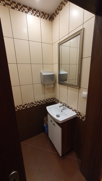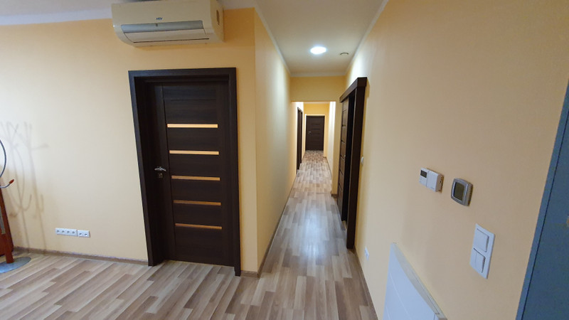 Lokal usytułowany jest na trzeciej kondygnacji nadziemnej (II piętro) na którą można dojechać nowoczesną windą lub przejść wykończoną w wysokim standardzie (okładziny granitowe) klatką schodową. Nowoczesne indywidualnie klimatyzowane pomieszczenia o wysokości 3 metrów nadają lokalowi prestiżowego charakteru. Układ funkcjonalny pomieszczeń jest bardzo dobry. Wejście z klatki schodowej przez drzwi antywłamaniowe i przeciwpożarowe bezpośrednio do pomieszczenia mogącego pełnić rolę sekretariatu lub poczekalni, którego przedłużenie stanowi hol w kształcie prostokąta. Bezpośrednio przy tym pomieszczeniu znajduje się jedno pomieszczenie mogące pełnić rolę gabinetu dyrektora/prezesa. Wzdłuż holu rozmieszczone są wejścia do czterech oddzielnych pomieszczeń. Po prawej stronie holu znajduje się część socjalna w skład której wchodzą kuchnia i łazienka. We wszystkich pomieszczeniach biurowych na podłogach znajdują się panele a w części socjalnej płytki gresowe i ceramiczne.