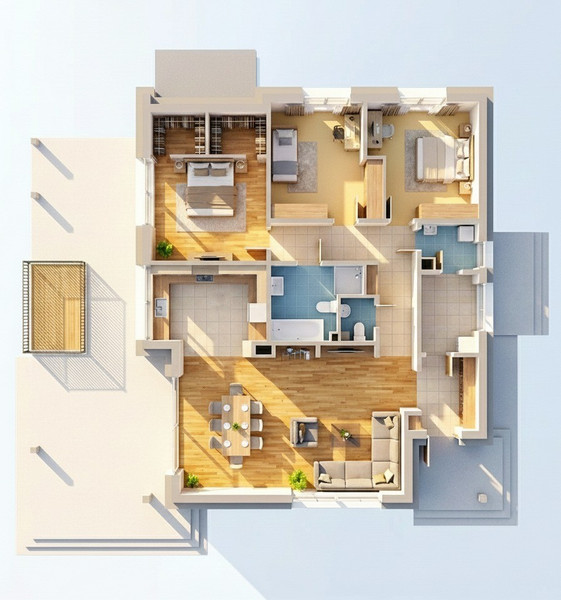 • Strefa prywatna (3 sypialnie): Dwa wygodne pokoje oraz główna sypialnia z własną, prywatną garderobą.