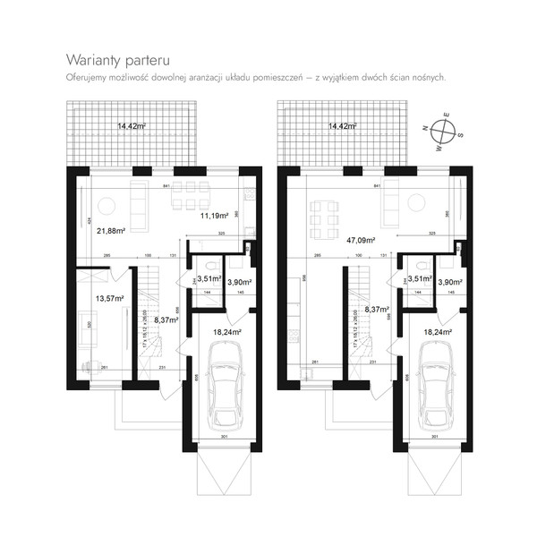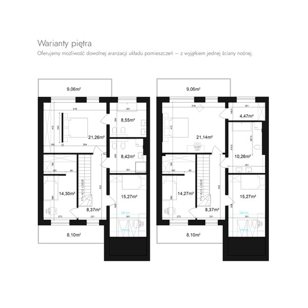 Na etapie Istnieje możliwość wyboru jednego z dwóch wariantów parteru i piętra oraz wprowadzenia drobnych zmian w układzie pomieszczeń – jesteśmy otwarci na potrzeby klienta.