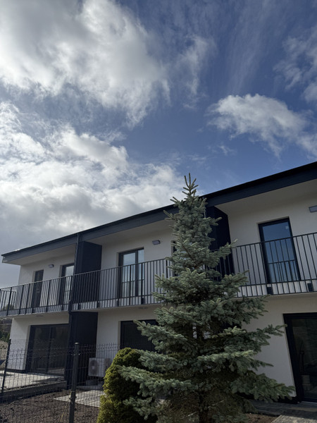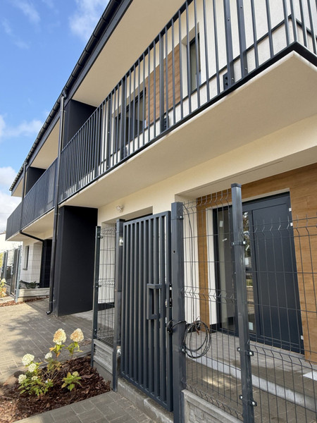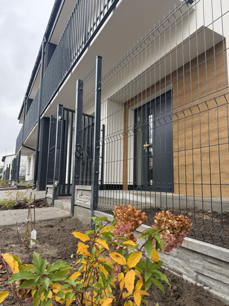 Trzy nowe domy jednorodzinne w zabudowie szeregowej składający się z dwóch kondygnacji parteru i piętra (pełny wymiar piętra ) z płaskim dachem , doświetleniem (okno w dachu) i z wyjściem na balkon z każdego pokoju.W parterze duży taras z wyjściem na ogródek.