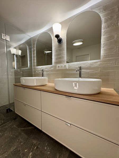 • Nowoczesne wykończenia – naturalne materiały, eleganckie płytki, oświetlenie LED
