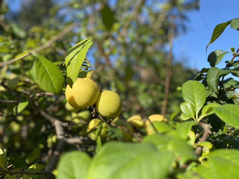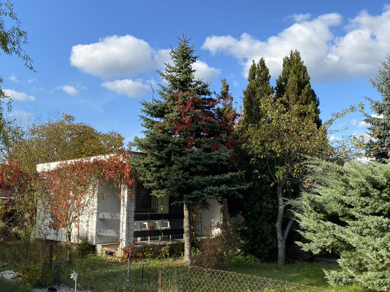 • Na działce są piękne stare drzewa: czereśnia, jabłoń, wiśnie, są porzeczki, pigwy, orzechy laskowe, maliny. Są tez inne nasadzenia: