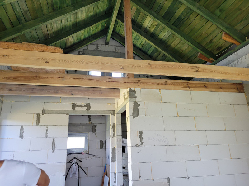 Dom w środku ma wylane podłogi, postawione ścianki działowe. Do wykończenia. Cena 399 000 zł do negocjacji.