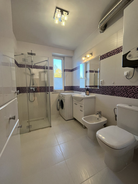 2 poziom - 1 piętro, wysokość 2,6m. Duży salon z dużym oknem. Dwie sypialnie, Duża kuchnia z jadalnia. Można wydzielić trzecią sypialnię z jadalni. Łazienka z prysznicem, bidetem, umywalką toaletą i miejscem na pralkę. W łazience znajduje się piec gazowy przeznaczony do ogrzewania mieszkania. Przedpokój z miejscem na duża szafę. Duży balkon. W pokojach na podłodze parkiet drewniany. Ściany w gładzi gipsowej.