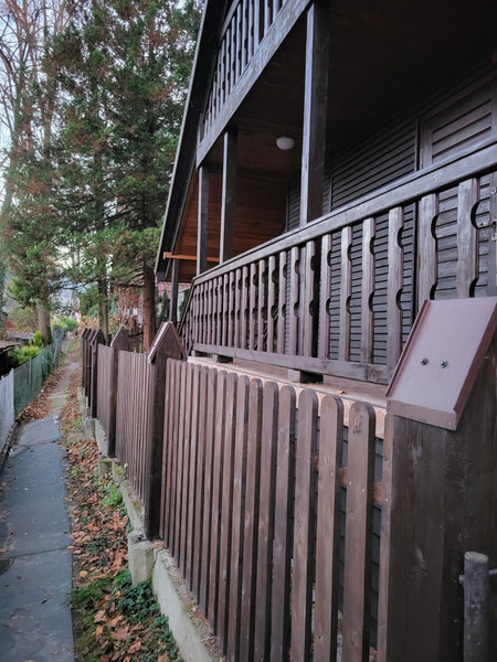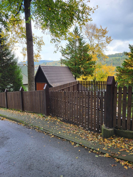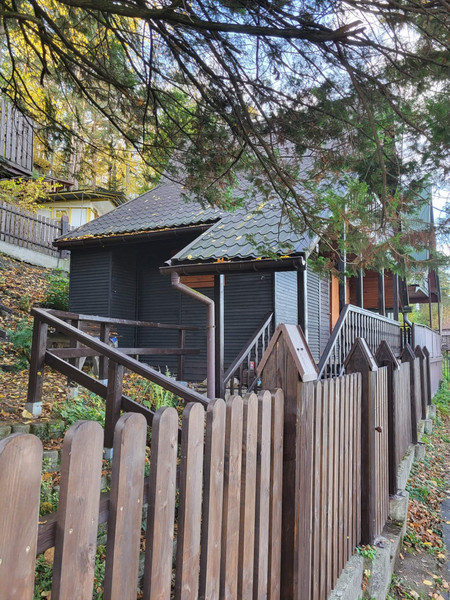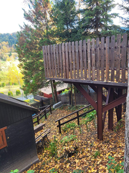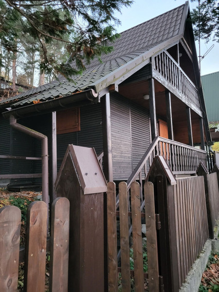 Domek 2 kondygnacyjny z nadbudówką oraz miejscem parkingowym na terenie o powierzchni około 1,6 ara. Pierwsza kondygnacja to pokój wypoczynkowy, aneks kuchenny, WC z prysznicem oraz balkon. Druga kondygnacja to pokój oraz balkon. Z balkonów od strony południowo-wschodniej rozciąga się wyjątkowy widok na las i Dunajec. Konstrukcja i całość domu drewniana, a dach pokryty blachą. Miejsce parkingowe konstrukcji stalowej na terenie posesji.