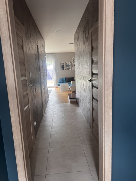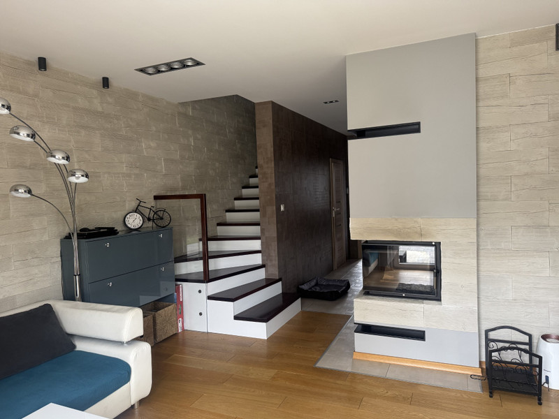 Dom wykończony , gotowy do zamieszkania.Na podłogach deska oraz kafle - ogrzewanie pdłogowe. W całym mieszkaniu wysoki standard użytych materiałów wykończeniowych.