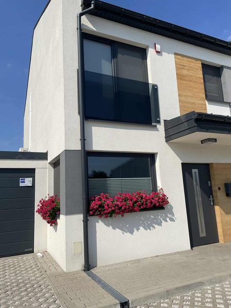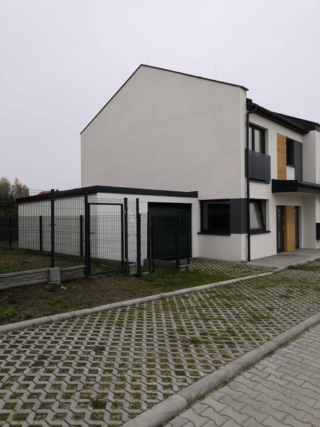 Na sprzedaż dom w zabudowie szeregowej o powierzchni całkowitej i jednocześnie użytkowej 99 m² z garażem 25m2 położony na osiedlu przy ul. Pomorskiej. Dom posiada również nieużytkowe wykończone podłogą poddasze oraz pomieszczenie gospodarcze 2m2. Osiedle obejmuje 47 domów w zabudowie szeregowej wraz z wiatą śmietnikową i rowerową.