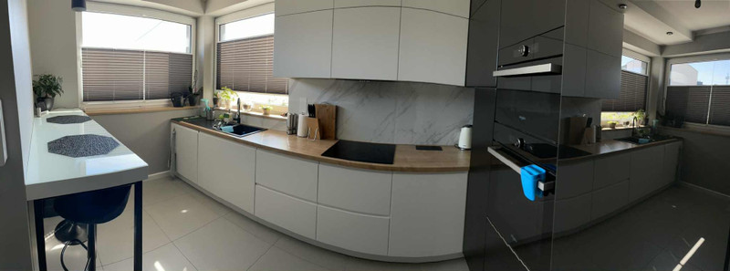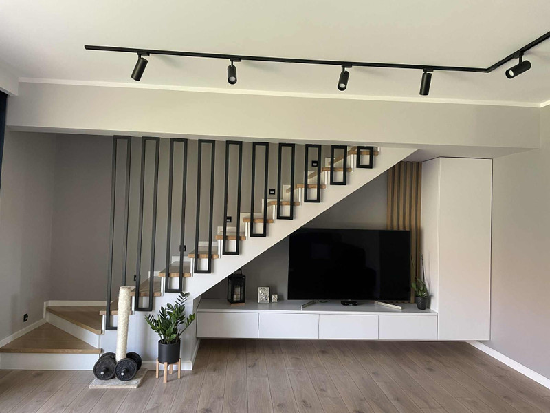 Na parterze znajduje się zamknięta kuchnia z funkcjonalną zabudową, wiatrołap z szafą w zabudowie i siedziskiem, łazienka z prysznicem i schowkiem, korytarz wraz z przestronnym salonem(narożne okno + zabudowa RTV pod klatką schodową)