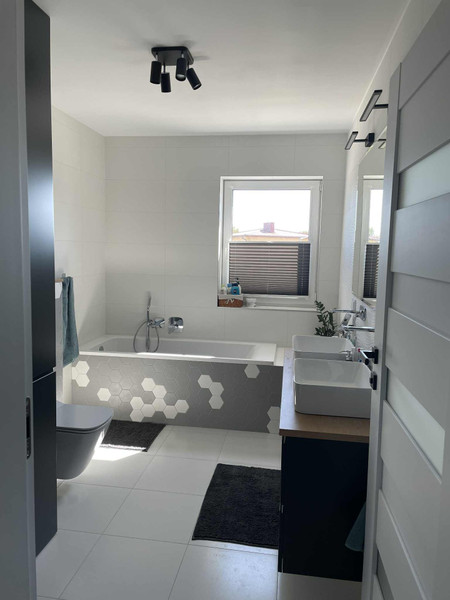 Wszystkie pokoje na poddaszu są pełnowymiarowe, bez skosów.