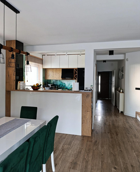 Oszczędzasz czas i pieniądze na wykończeniu. Dom jest w pełni umeblowany i wyposażony w wysokiej klasy sprzęt AGD. Wnętrza zaprojektowane w nowoczesnym stylu (lamele, beton architektoniczny, stylowe oświetlenie LED).