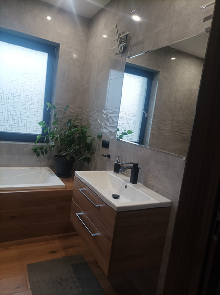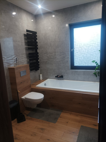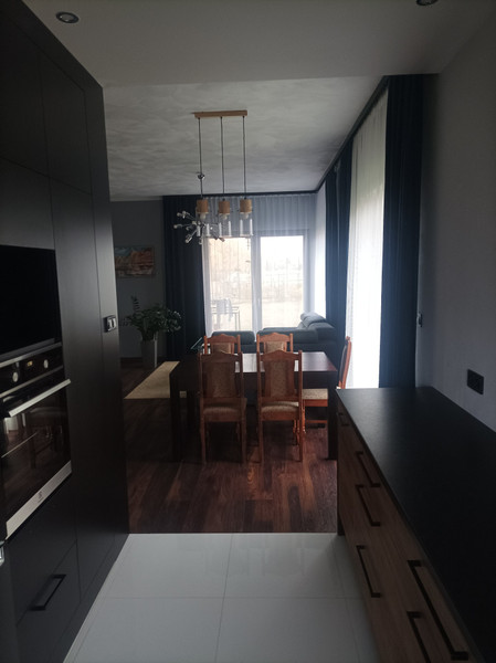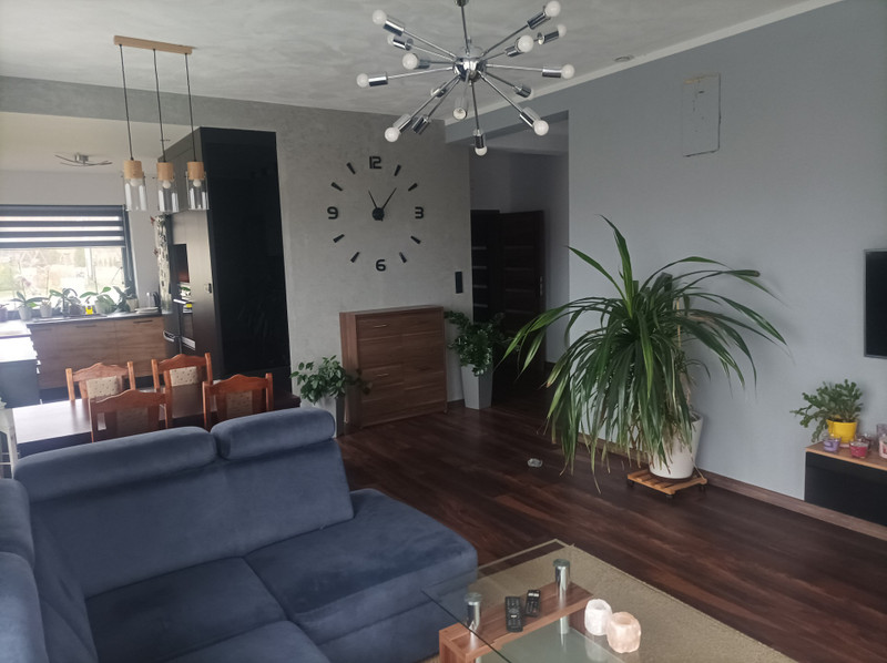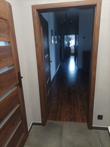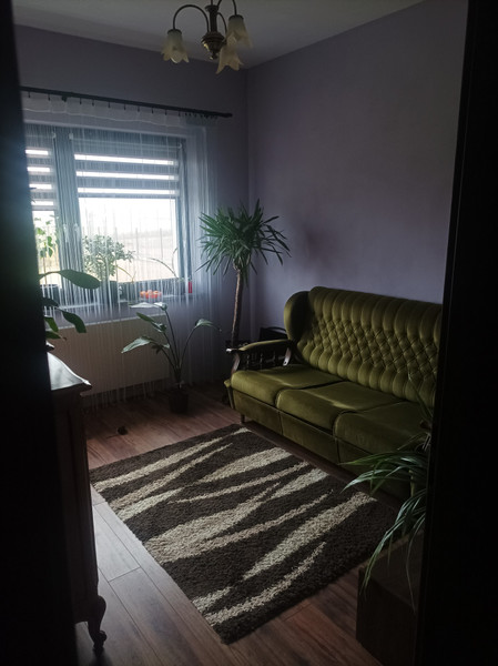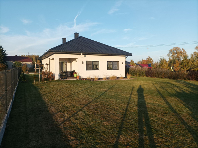 Dom składa się z dwóch pokoi, z dwóch łazienek, przestronny duży salon z jadalnią, kuchnia, spiżarka ,hol, korytarz, garaż, kotłownia oraz taras. Dom gotowy do zamieszkania od zaraz.