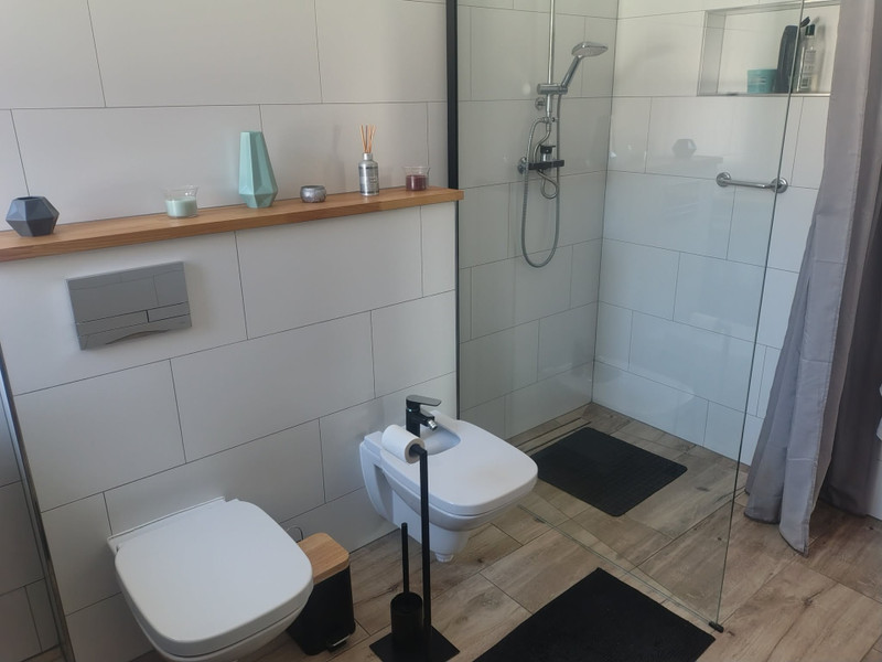 - prąd, woda ze studni głębinowej, ogrzewanie podłogowe i ciepła woda – butla Gaspol, ścieki – oczyszczalnia ekologiczna.
