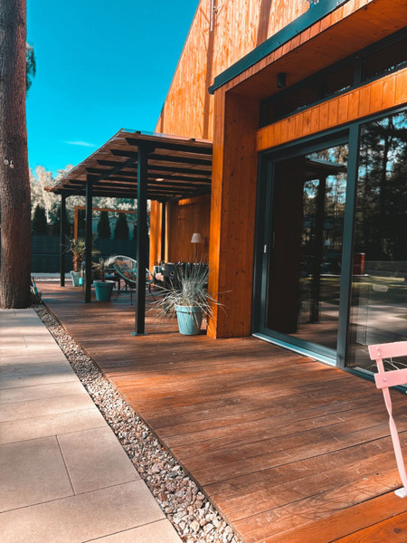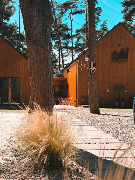 kompleks dwóch nowoczesnych, stylowych budynków ( dom 120 m2 plus pensjonat) o unikalnej architekturze inspirowanej stodołą oraz dwoma domkami i strefą spa harmonijnie wpisujących się w otoczenie natury. Całość została zaprojektowana z dbałością o detale, komfort oraz estetykę.