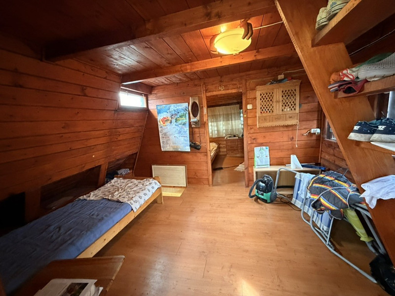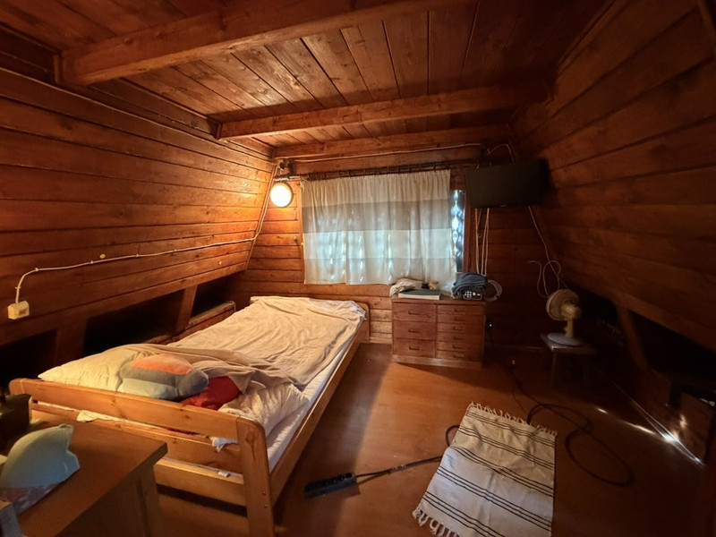 Domek znajduje się w cichej części miejscowości, położony jest na działce o powierzchni 865m2 w całości ogrodzonej siatką. Domek składa się z parteru na którym znajdują się łazienka oraz duża kuchnia, piętra składającego się z dwóch pokoi, poddasza oraz dodatkowego pomieszczenia z osobnym wejściem z zewnątrz. Media: prąd, woda, szambo, dodatkowo gaz w działce (nie podłączony do domku).
