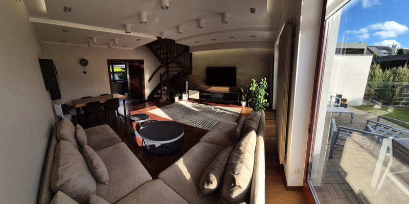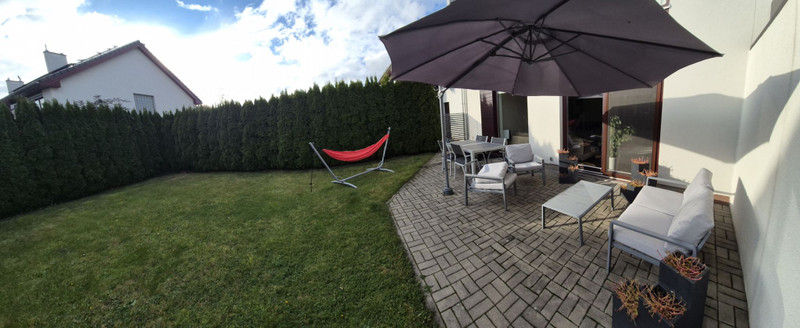 Słoneczny ogród, a także taras od strony południowej, stanowią wspaniałą przestrzeń do wypoczynku. Dodatkowa część działki znajduje się przed wejściem do lokalu, gdzie mieści się pas zieleni i podjazd dla dwóch samochodów.
