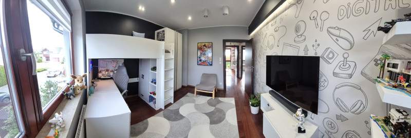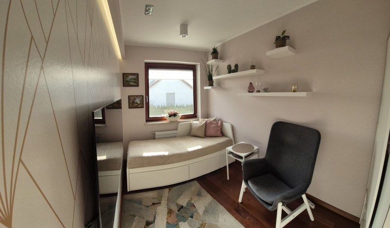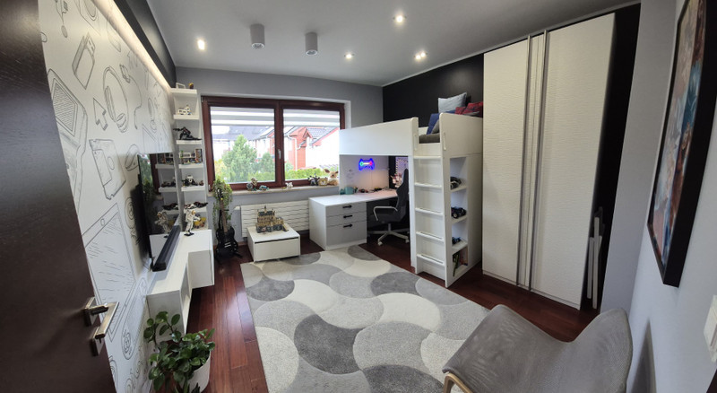 • Pierwsze piętro: cztery sypialnie, w tym jedna z prywatną łazienką, dodatkowa duża łazienka.