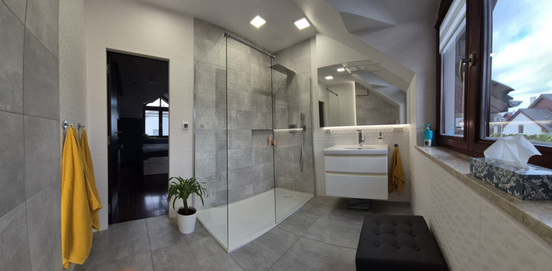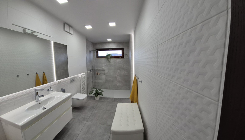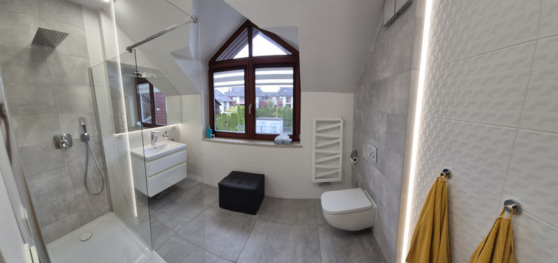 • podgrzewane miejsca odwieszanych ręczników w obu łazienkach na piętrze