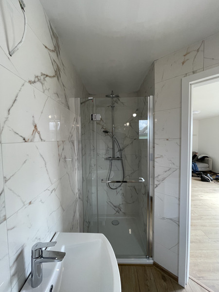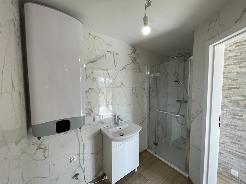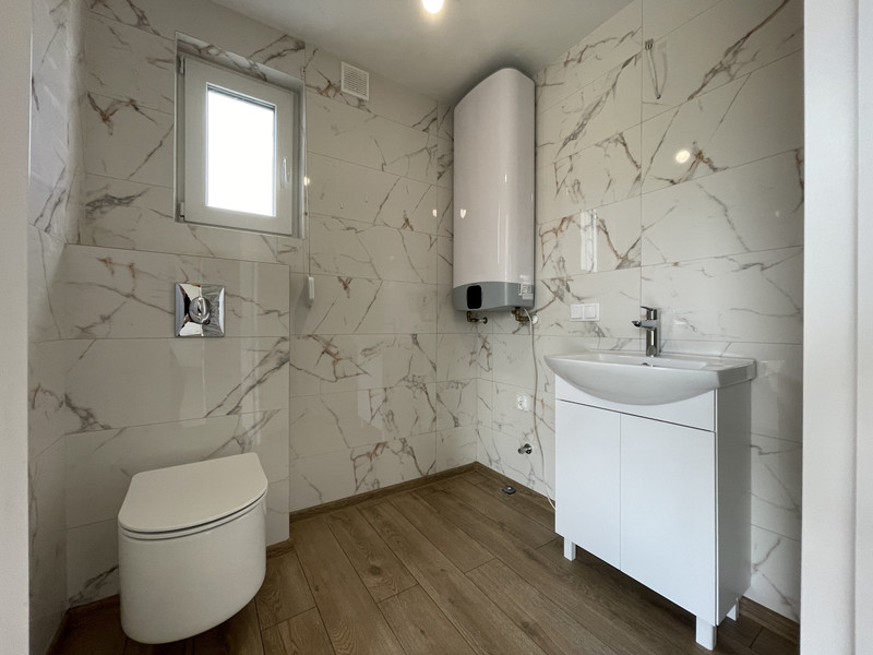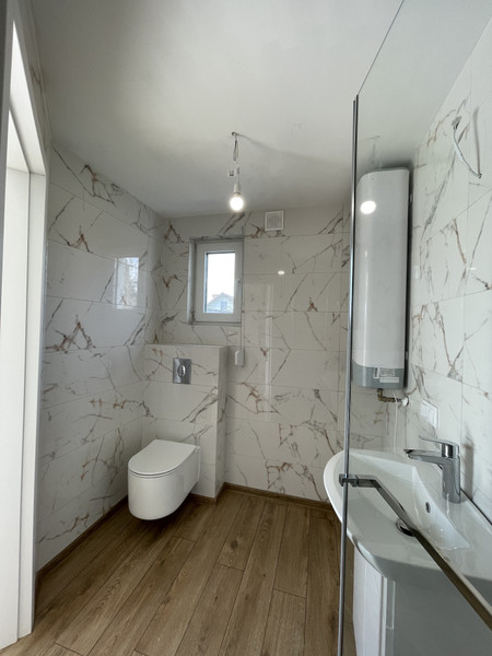 Łazienki wykończone z białym montażem i meblami; Podgrzewacz wody Ariston Velis-Eva 100L dwukomorowy;