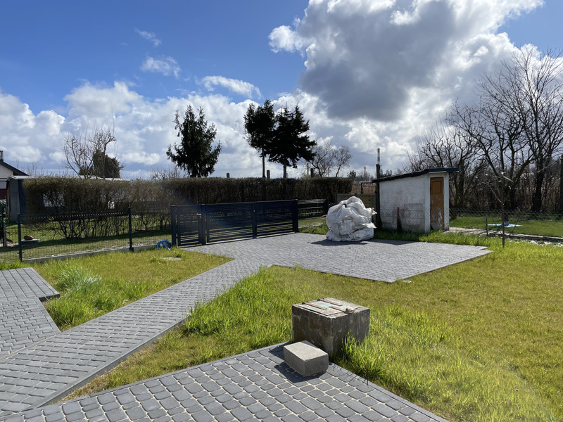 Dojścia na posesji wybrukowane wraz z miejscem do parkowania na 2 pojazdy,
