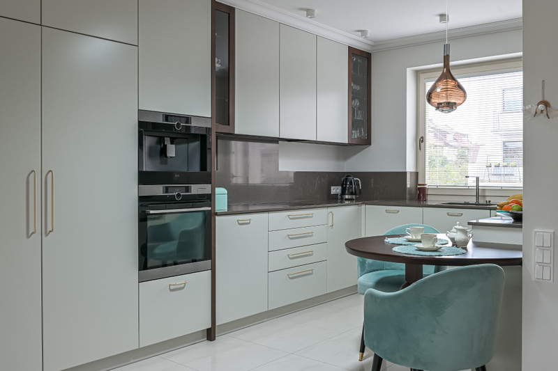 Sprzęt kuchenny najwyższej jakości – chłodziarka do zabudowy Liebherr (wys. 180 cm) zamrażarka Liebherr (180 cm), piekarnik parowy, kawiarka do zabudowy, zmywarka (90tka) oraz płyta indukcyjna (aż 90 cm) wszystkie marki AEG.