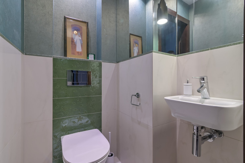 TOALETA 1,5m2 z armaturą Roca i baterią Hansgrohe.