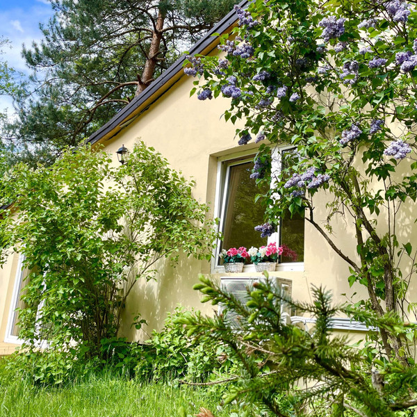 Dom stoi na końcu drogi, na spokojnej polanie. Sąsiedzi? Dwóch – obaj kulturalni, pomocni, obecni jedynie w lecie. To prawdziwa oaza bezpieczeństwa, prywatności i spokoju. Za domem sezonowo przepływa strumyk. A gdy zakwitają bzy, całe to miejsce pachnie jak obietnica dobrego życia.