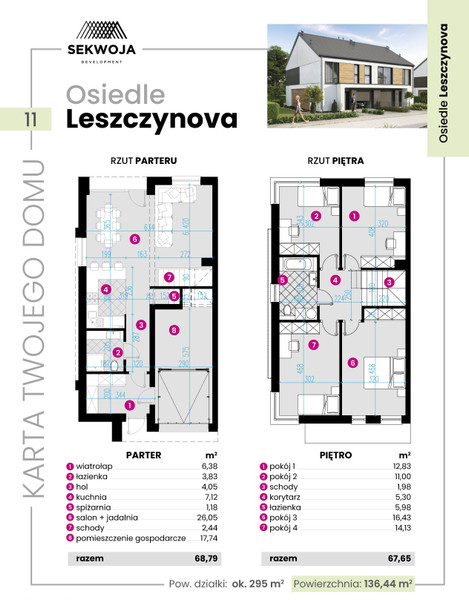Budynek w stanie wyższym deweloperskim o pow. uż. 136,44m2, usytuowany na działce o pow. 295m2.