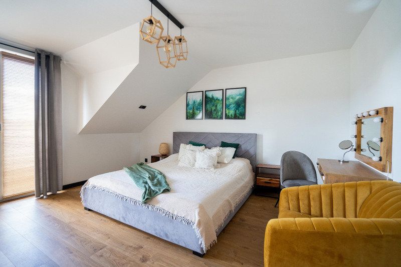 Nowoczesny budynek w zabudowie bliźniaczej wybudowany w 2021 roku o powierzchni użytkowej 155,68m2 z przepięknie urządzoną oraz zagospodarowaną działką o powierzchni 384m2 z pełnym ogrodzeniem.