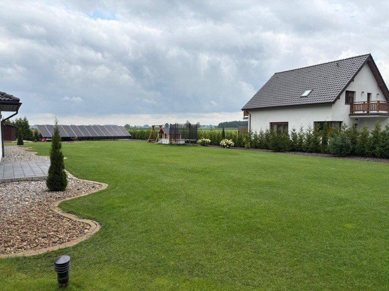 Dom posiada garaż 2 stanowiskowy, strych, 3 łazienki, dużą kuchnie z pomieszczeniem gospodarczym, 4 pokoje i 2x taras. Oczyszczalnia ścieków, ogród wraz ze studnią i systemem nawadniania, 2 automatyczne roboty do trawy, 4 dodatkowe ujęcia wody na działce,2 bramy wjazdowe, fotowoltaika 10kw, złącze do ładowania auta w garażu, pompa ciepła gruntowa/głębinowa ( 2x odwierty po 75m), ogrzewanie podłogowe, zestaw kamer, automatyka rolet, bram i oświetlenia z telefonu.