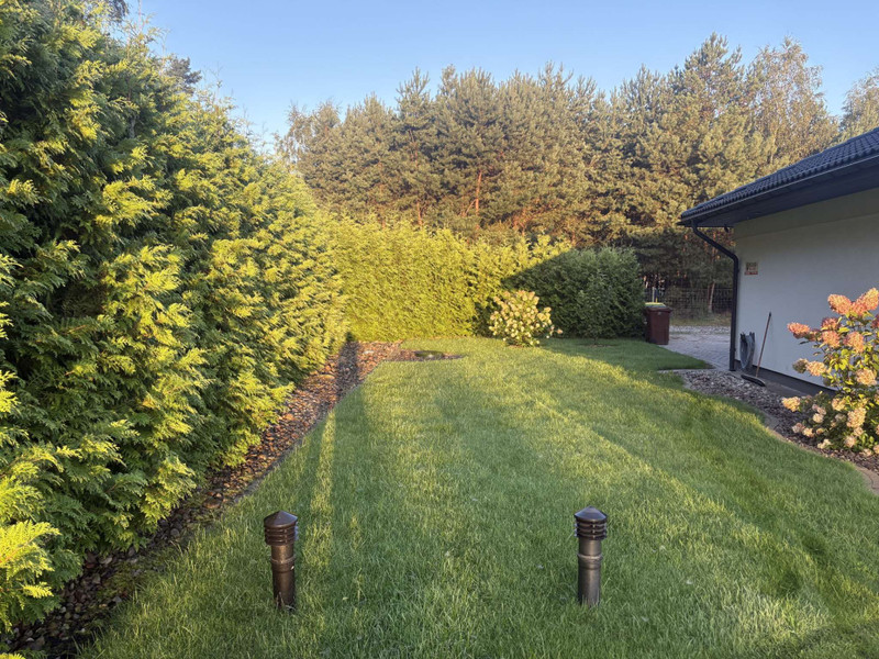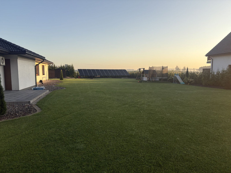 Działka wyposażona jest w studnie i automatyczny system podlewania wraz z robotami do koszenia trawy.