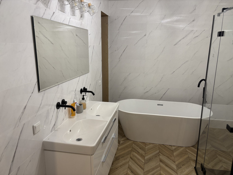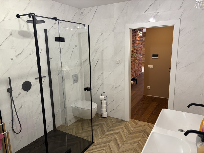 Salon z kuchnią i spiżarnią, 3 pokoje plus sypialnia z garderobą i łazienką. Duży taras.