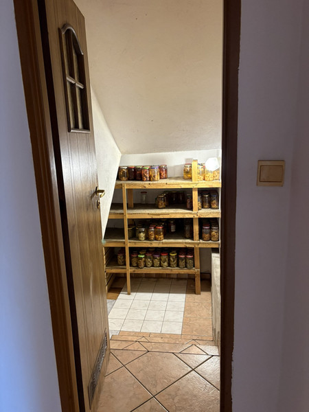 Na parterze znajduje się salon z jadalnią i wyjściem na ogród, osobna kuchnia, łazienka z prysznicem, pomieszczenie gospodarcze, kotłownia oraz mała piwniczka. Piętro oferuje cztery nieprzechodnie pokoje, dużą łazienkę z wanną oraz taras.