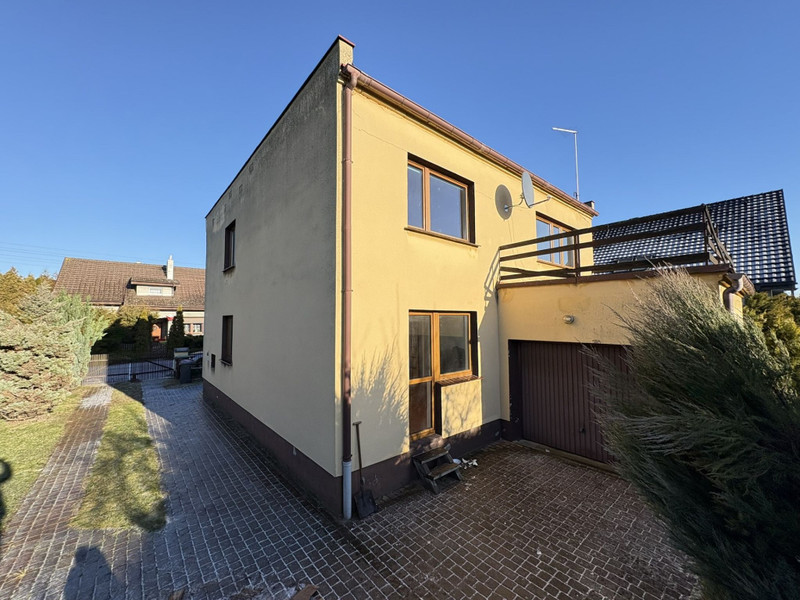 Do domu przynależy garaż w bryle budynku (ok. 18 m²) oraz dodatkowy garaż blaszany. Podjazd i wjazd wyłożone kostką brukową, dojazd drogą utwardzoną. Ogrzewanie piecem na ekogroszek i gazem, dostęp do wody i kanalizacji miejskiej, możliwość podłączenia światłowodu.