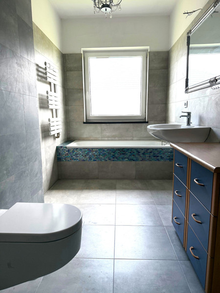 Budulec - pustak ceramiczny, fundament, bez piwnic, elewacja ocieplona, poddasze ocieplone. Dach pokryty dachówką ceramiczną. Salon z częścią jadalną i kuchnią, trzy sypialnie, garderoba, dwie łazienki, spiżarka, kotłownia, hol, garaż duży otwierany pilotem.. Drzwi, podłogi, tynki , malowanie. Łazienka wykończona z wc i wanną. Strop betonowy. Możliwość dobudowania kondygnacji I piętra. Wszystkie media plus satelita i antena do internetu. Ogrzewanie gazowe, grzejniki i podłogowe, piec c.o. dwufunkcyjny. Kominek z szybą uchylaną i podnoszoną. Alarm kodowany oraz kamery wizyjne budynku i wejść.