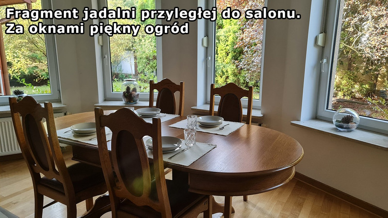Dom o powierzchni mieszkalnej 245 m2 i użytkowej 345 m2. Na ponad tysiąc metrowej działce z pięknym różnorodnym ogrodem z pasją pielęgnowanym od lat. Dom zaskakuje rzadko spotykaną perfekcyjną funkcjonalnością rozmieszczenia wszystkich pomieszczeń. Cały dom jest harmonijnie zaprojektowany, aby zapewnić bezpieczeństwo, komfort i luksus. To doskonałe połączenie stylu i nowoczesnych rozwiązań technicznych. Widać w nim dużą architektoniczną kulturę.