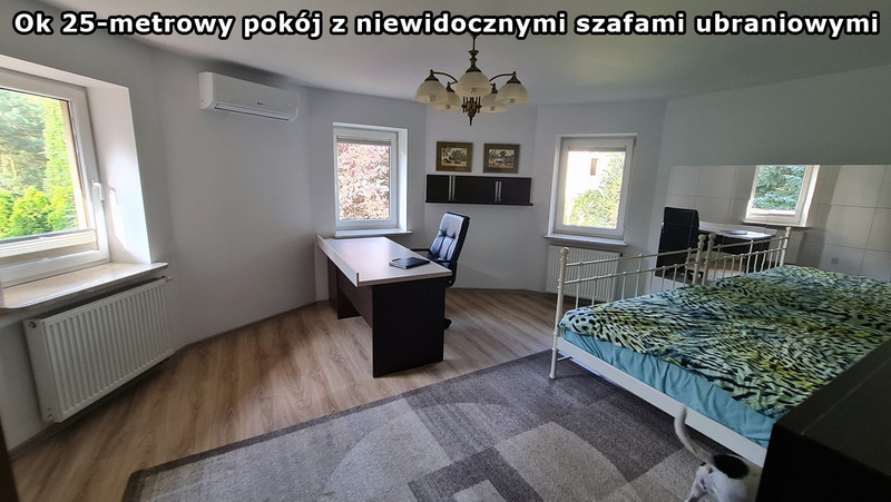 Duży pokój ok. 50 m2 do zagospodarowania – przestronne pomieszczenie z klimatyzacją o wszechstronnych możliwościach aranżacji, doskonałe jako siłownia, pokój rekreacyjny i dużej garderoby.